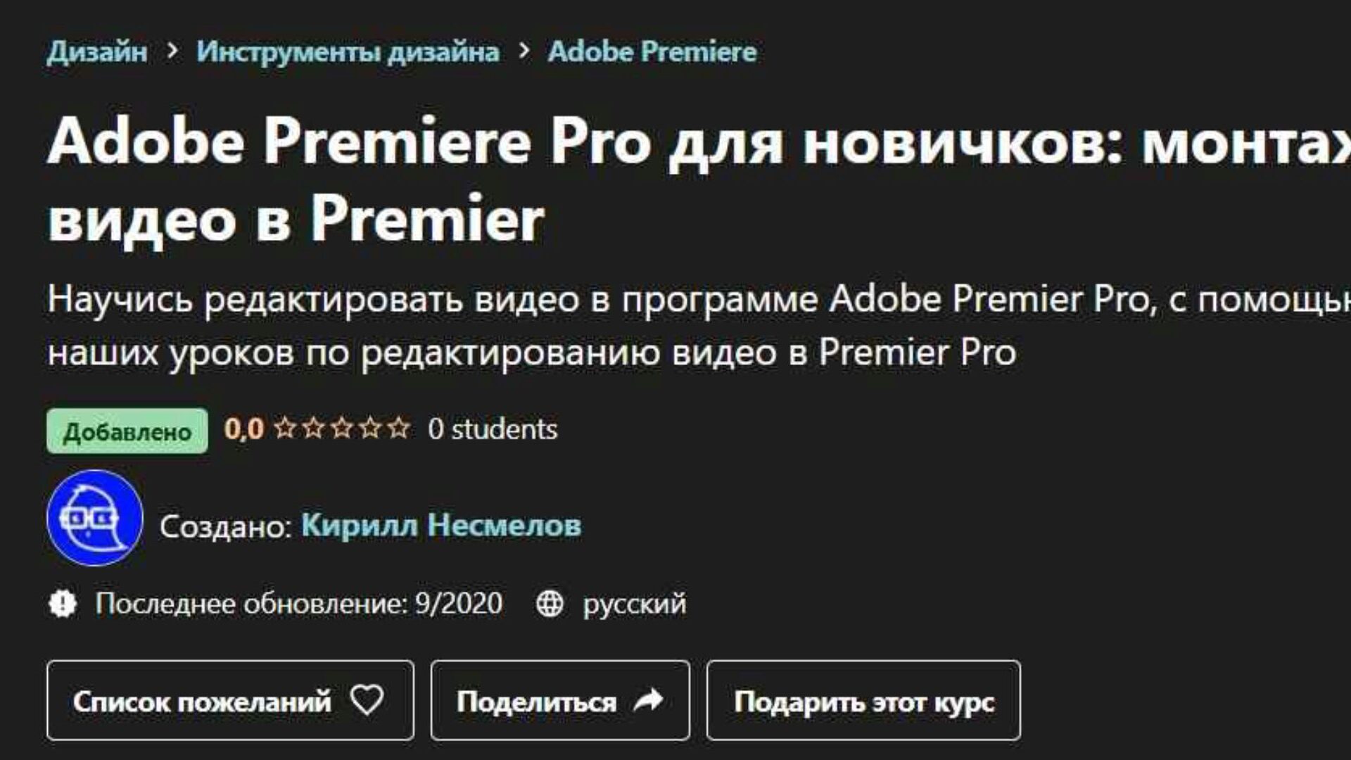 Отзывы о курсе «Adobe Premiere Pro для новичков: монтаж видео в Premier» от Кирилла Несмелова