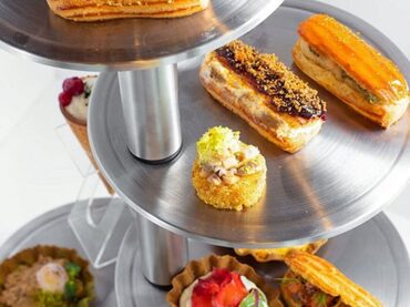Для каждого эклера 2 начинки и вкусовая глазурь для крышечки - Эклер с паштетом из печени и заварным кремом с горчицей - Эклер с паштетом из стейка и муссом из копчёного сыра - Эклер с тартаром из сёмги и кремом биск - Эклер с муссом из кальмаров и тапенадом
