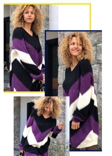 Использована пряжа CASHMERE 16 FINE Lana Grossa (80% шерсть, 10% нейлон, 10% кашемир; 320м/50г), черный цвет 250гр (250 гр, 300 гр), молочный 200гр (200 гр, 250 гр), номер 25 фиолетовый 250гр (250 гр, 300 гр). Вяжем нитью в два сложения.