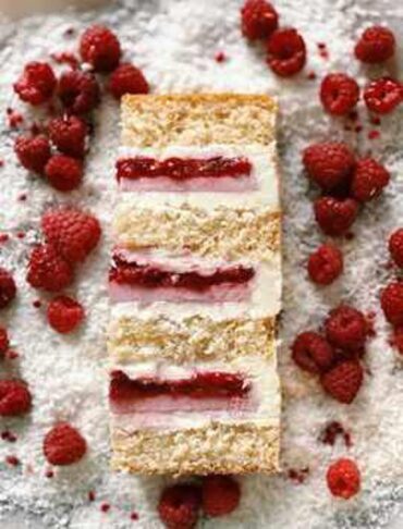 Торт «Кокос-Малина»: Кокосовый бисквит Кокосовая пропитка Нежнейший кокосовый крем Ароматное малиновое конфи Воздушный кокосовый мусс Технологическая карта в текстовом формате PDF с подробным описанием процессов приготовления.