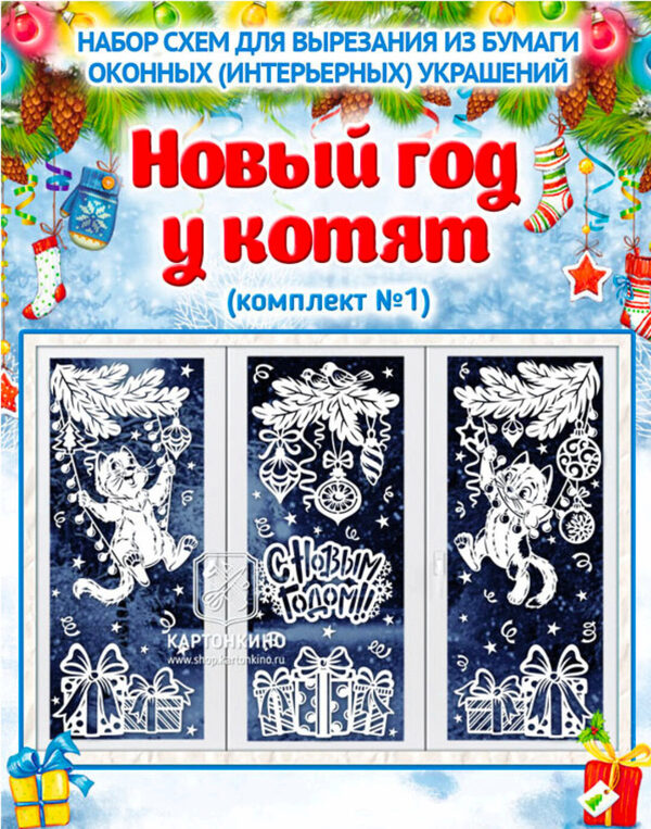 комплект №1 Праздничные интерьерные украшения «Новый год у котят» — kartonkino.ru слив скачать