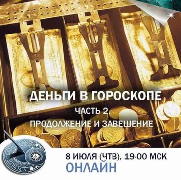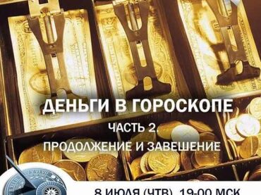 АНОНС: Онлайн лекция по узкой, но очень востребованной теме в чтении гороскопа рождения – источники дохода и заработка, проблемы с деньгами, возможность накоплений, опасности имуществу. Общая продолжительность 90 минут: 60 минут учебного материала и 30 минут ответов на вопросы по теме. По цене: