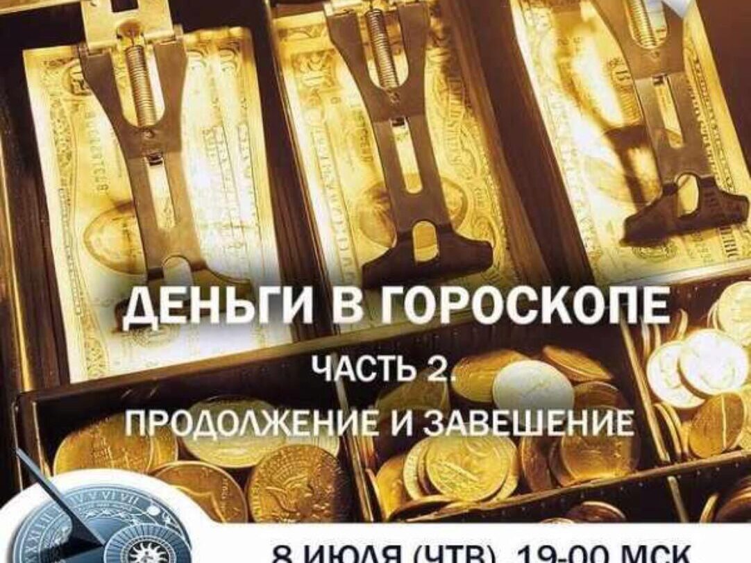 Продолжение мастер-класса «Деньги в гороскопе рождения»: источники дохода и заработка, проблемы с деньгами, возможность накоплений, угрожающие имуществу опасности.