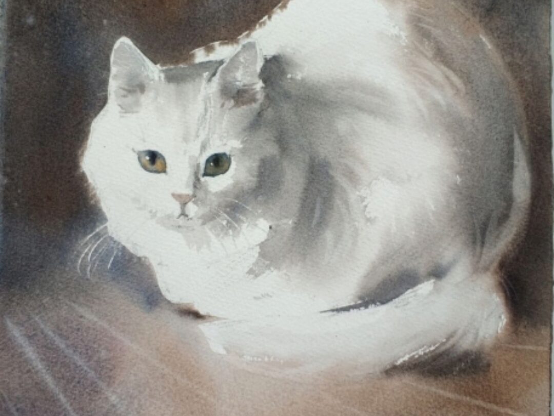 Возьмем два метода: по мокрому и по сухому — напишем 2-х котов. Отработаем все акварельные приемы: от контролируемого растекания до работы сухой кистью.