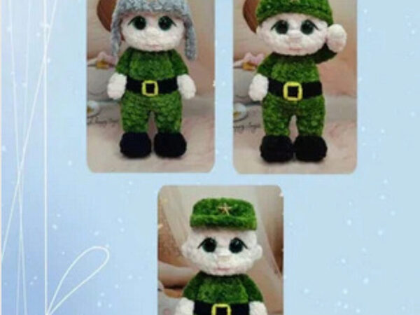 Подробное описание солдатика и 3 видов головных уборов (каска, кепка, ушанка).