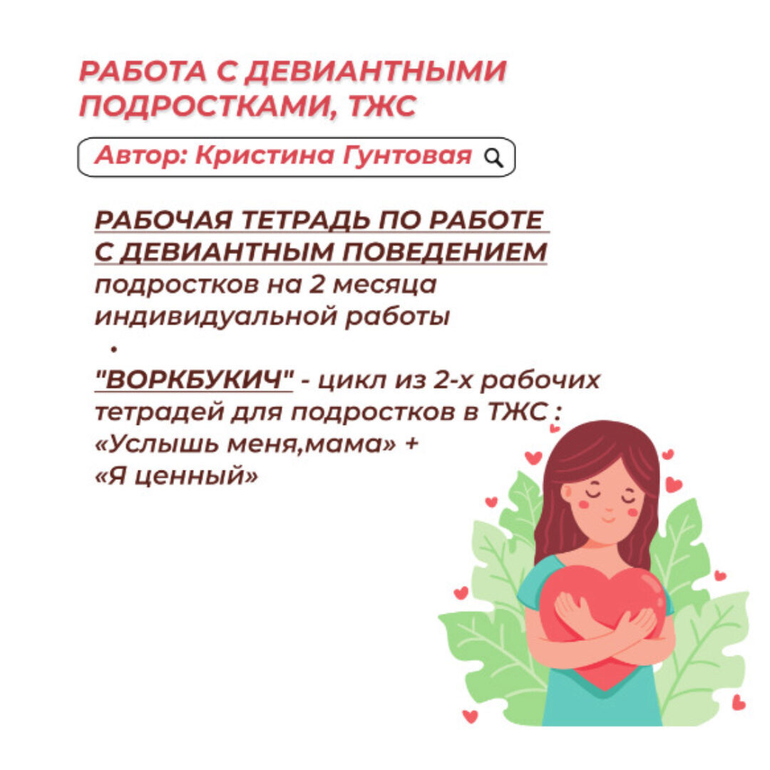 Курс Работа с Девиантными подростками, ТЖС: 3 рабочие тетради, автор Кристина Гунтовая. 1) ВОРКБУКИЧ «Я -ценный» Для развития уверенности в себе, формирования адекватной самооценки, самопознания себя как отдельной взрослой личности.