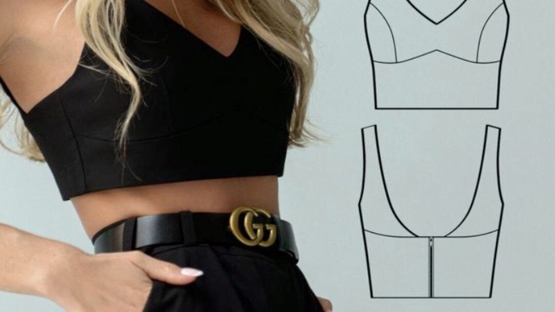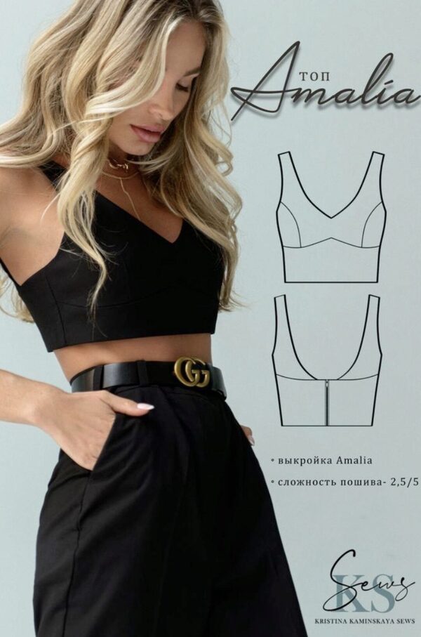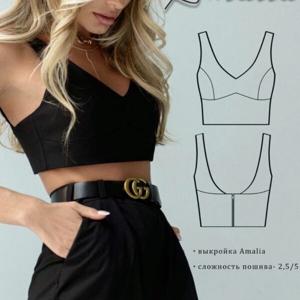 Курс kaminskaya-sew - Топ с V-образным вырезом Amalia. Размер 38-52. Рост 164, автор Кристина Каминская. Женский костюмный топ с V-образным вырезом AMALIA