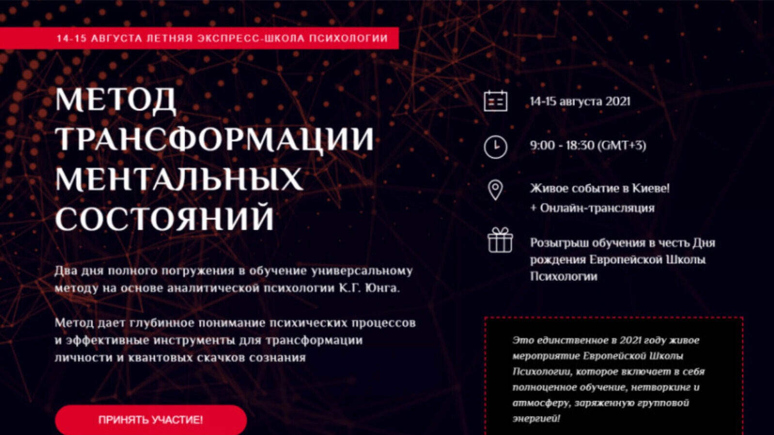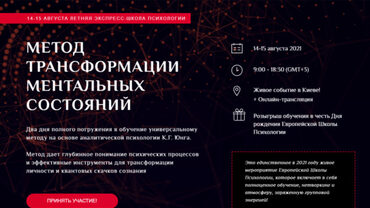 Курс epslive - Метод трансформации ментальных состояний. Тариф «Онлайн», автор Кристина Кудрявцева. Два дня полного погружения в обучение универсальному методу на основе аналитической психологии К.Г. Юнга.