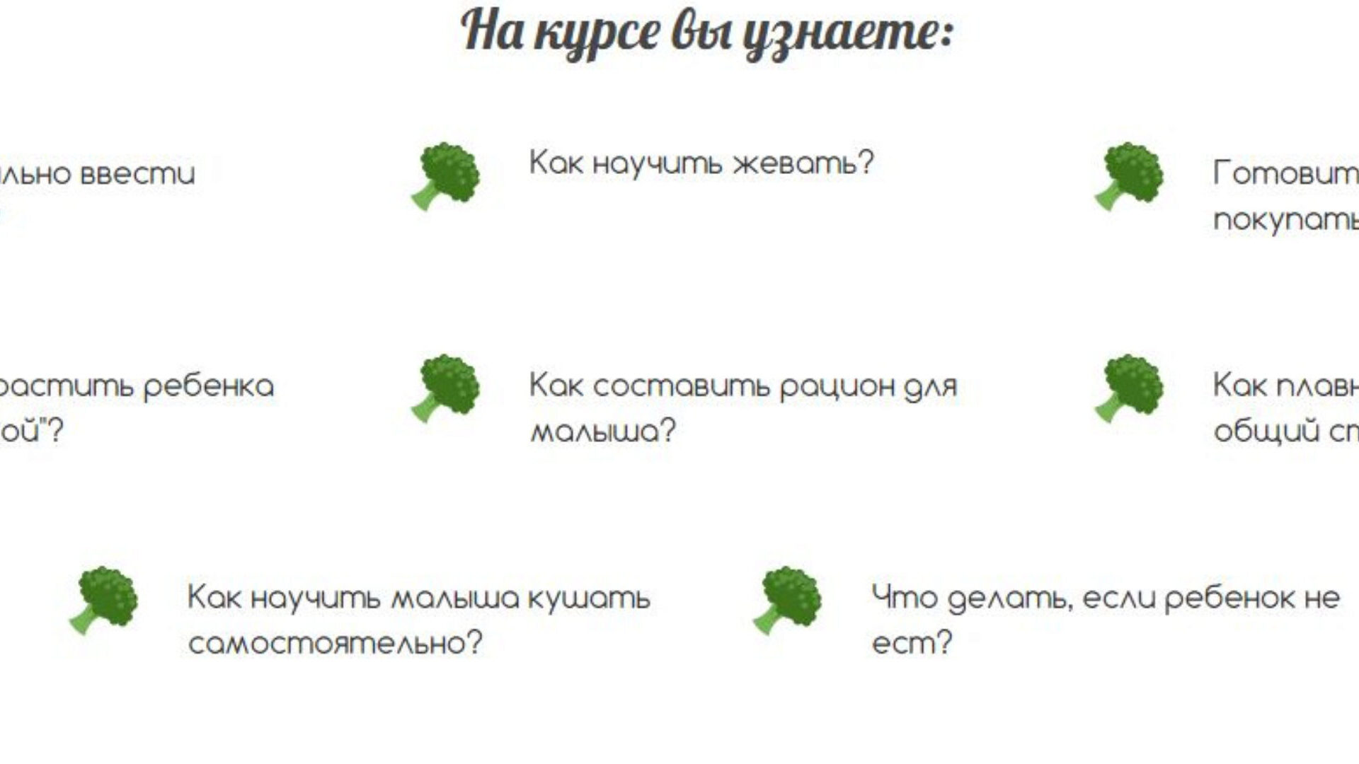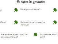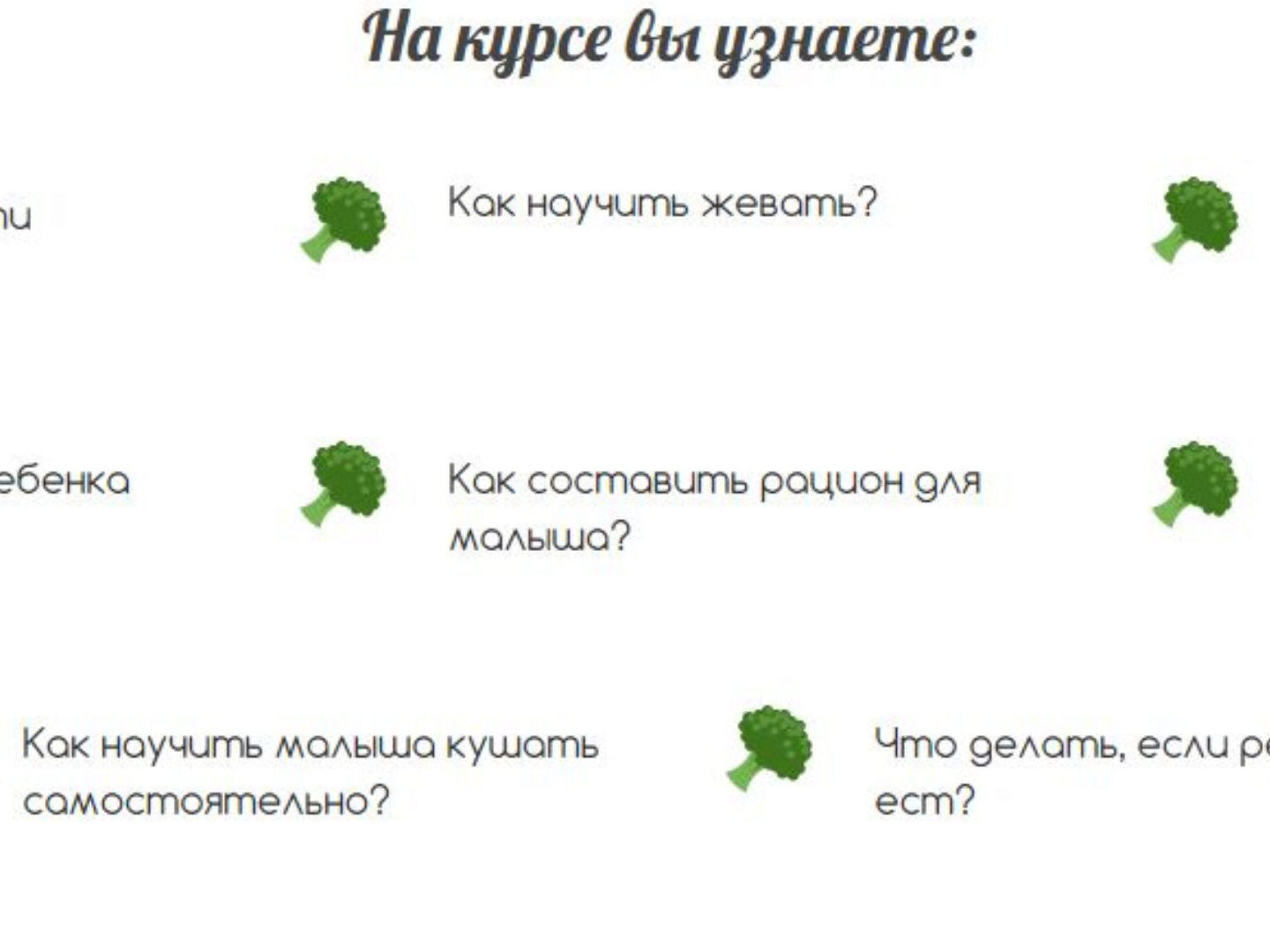 В этом курсе есть конкретные приёмчики, связанные с проблемами питания детей. Моему малоежке помогло. Все по делу. Рекомендую Каждая мама хочет, чтобы ее ребенок хорошо кушал, прибавлял в весе и рос здоровым, но не у всех это получается. Прикорм — это процесс знакомства ребенка с новым видом пищи,