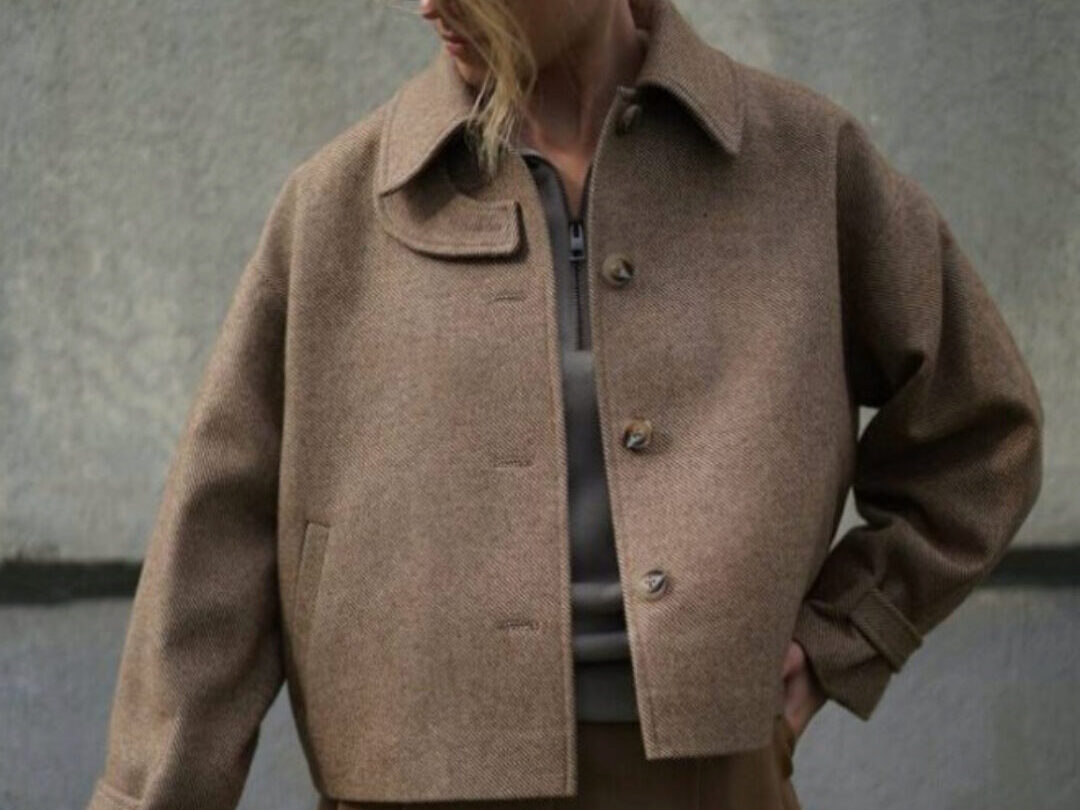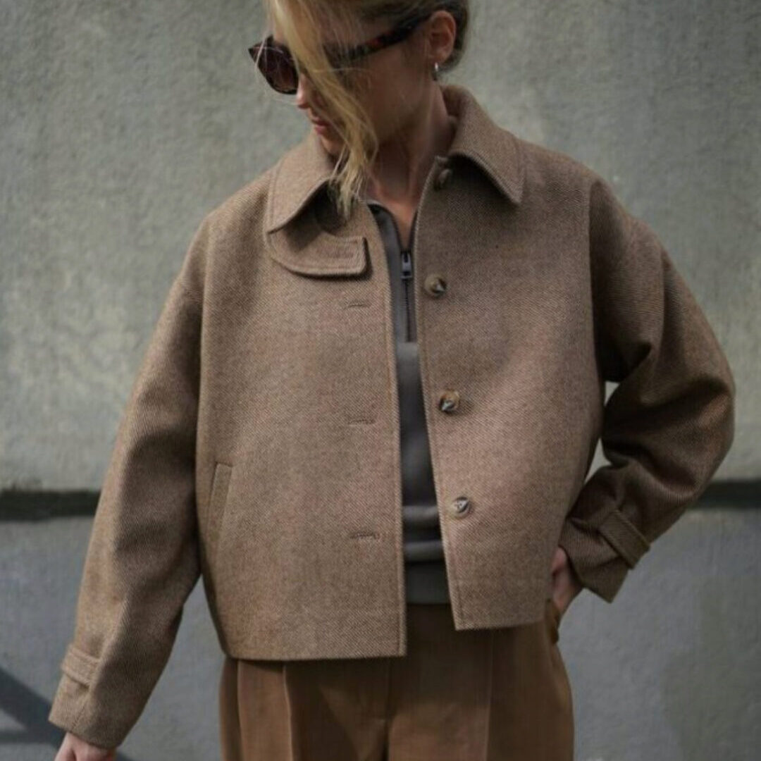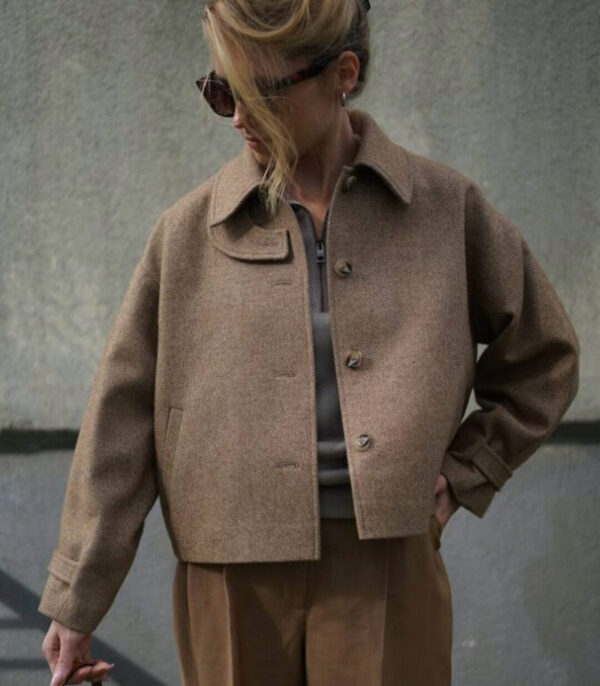 Длина полупальто чуть выше линии бедер.