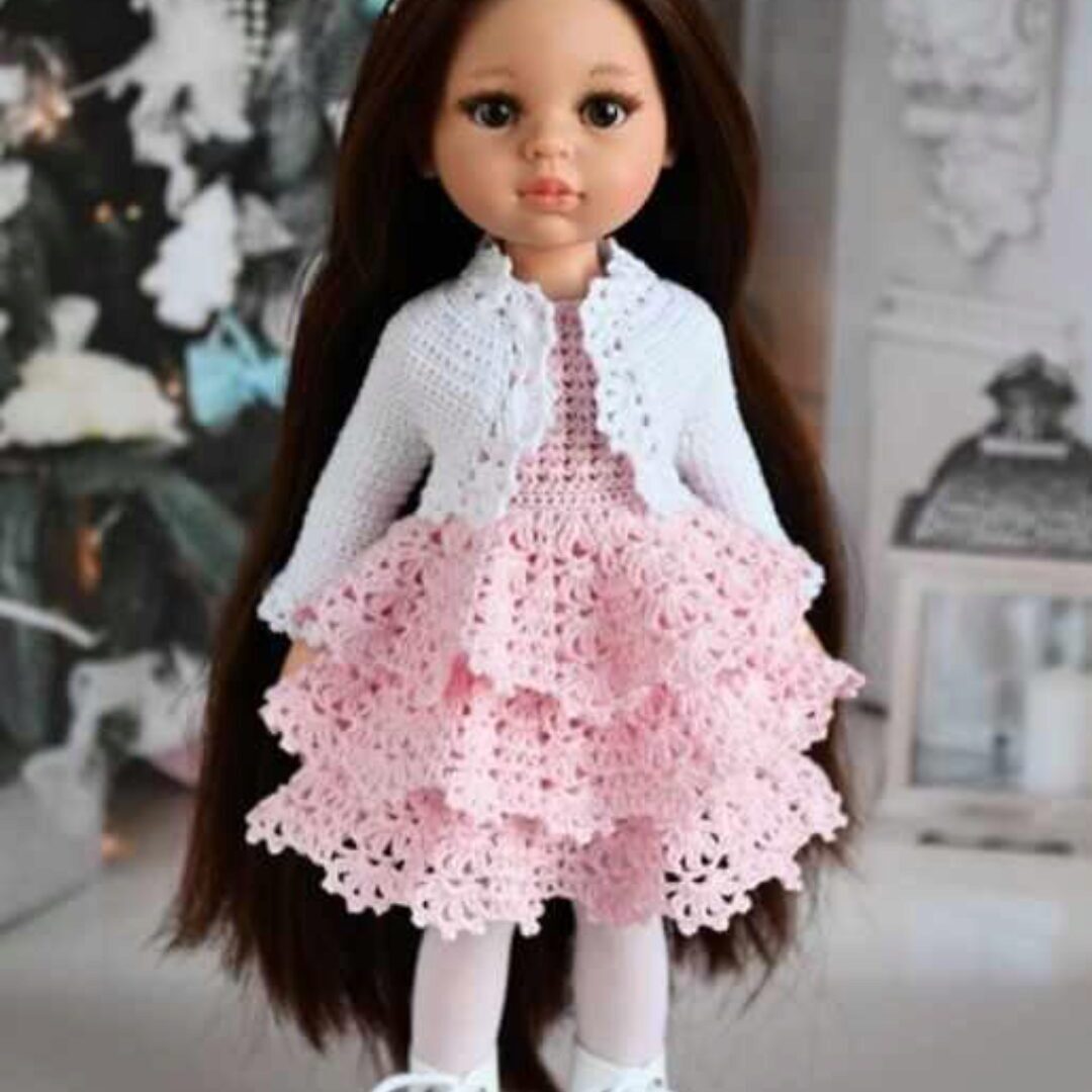 PDF-журнал по вязанию крючком наряда «Лиза» для кукол типа Paola Reina 34см Модель разработана для паолочек на новом типе тела. На телах предыдущих выпусков платье сидит чуть свободнее. ► Подробное текстовое описание вязания каждого ряда палатья и шляпки (с цветным узором) ► Фотографии этапов