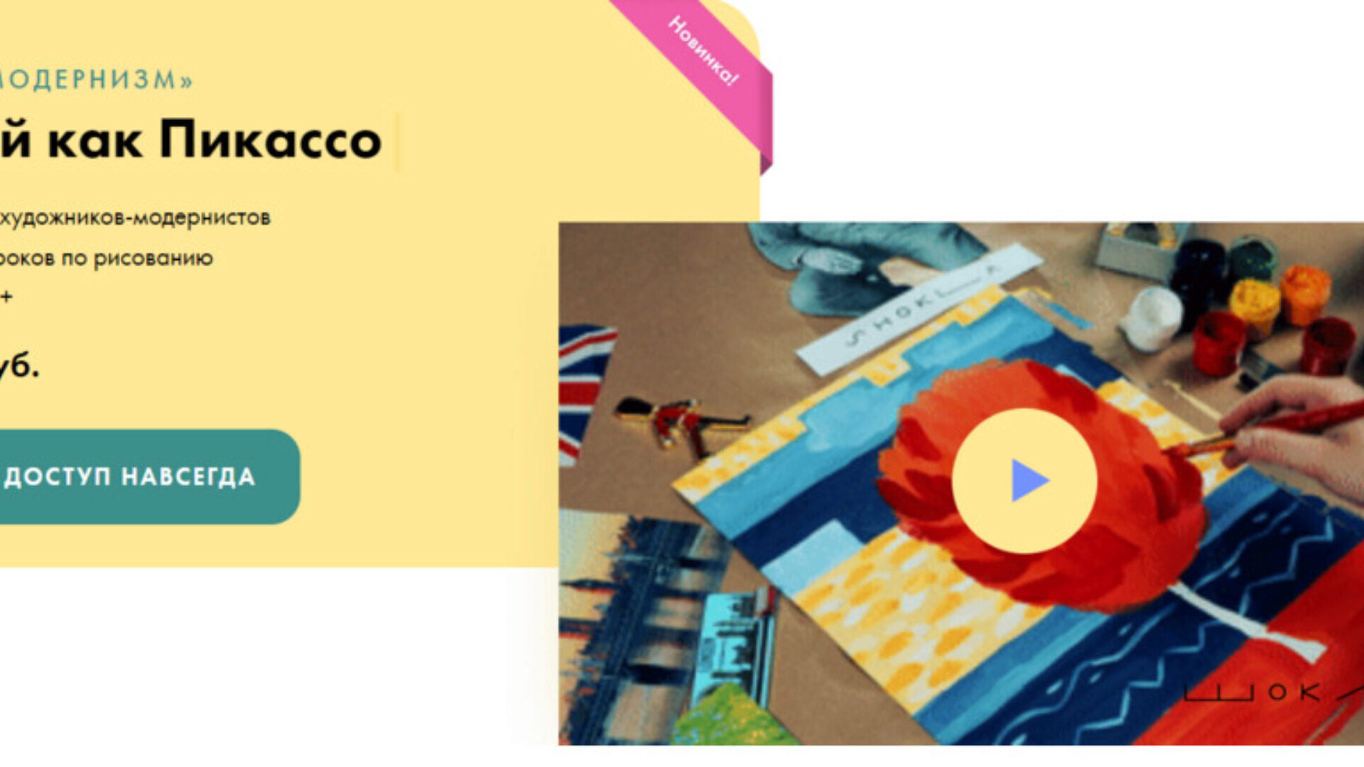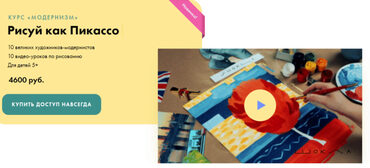 10 видео-уроков «Рисуй как Пикассо» по 30 минут каждый.