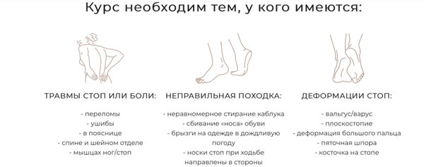 О курсе Скольким из нас знакомы боли в пояснице, спине и шейном отделе, мышцах ног и стоп? Но мало кто знает, что они указывают на нарушения паттерна шага. Вернуть телу лёгкость и свободу движения. Восстановить и наладить работу паттерна шага, вам поможет курс тренировок, который рассчитан на пять