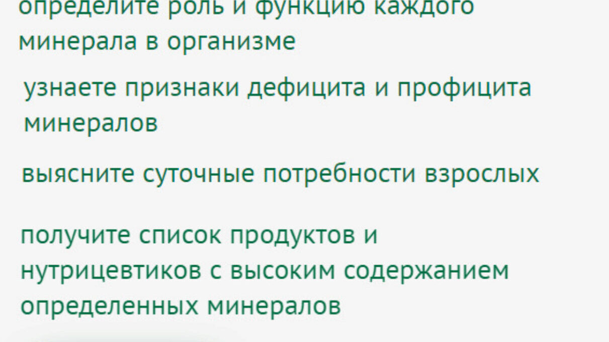 получите список продуктов и нутрицевтиков с высоким содержанием определенных минералов