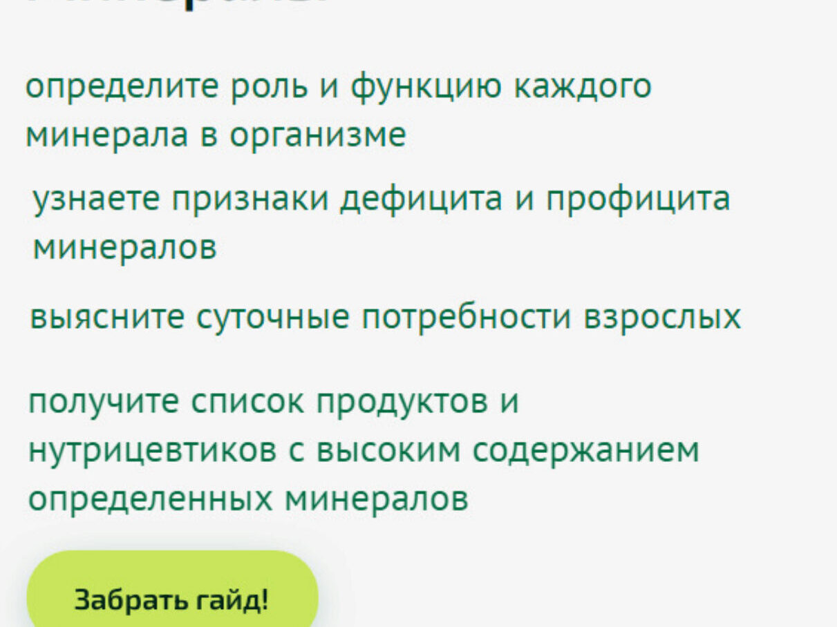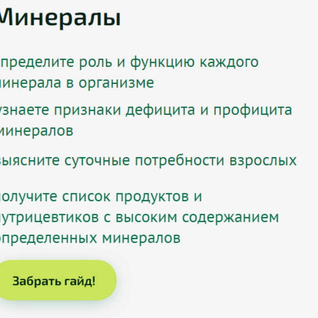 Серия гайдов от топовых нутрициологов Академии 19 гайдов на все случаи жизни! Выберите то, что актуально для вас или заберите все! Подручные помощники на все случаи жизни:здоровье, быт, питание и безопасность! Справочник Минералы Отказ от глютена Инсулинорезистентность Вирусная нагрузка