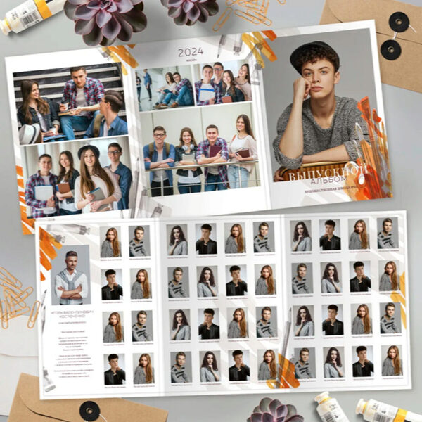 - 7 разворотов - включая варианты для альбома общей верстки и разворота с учителями