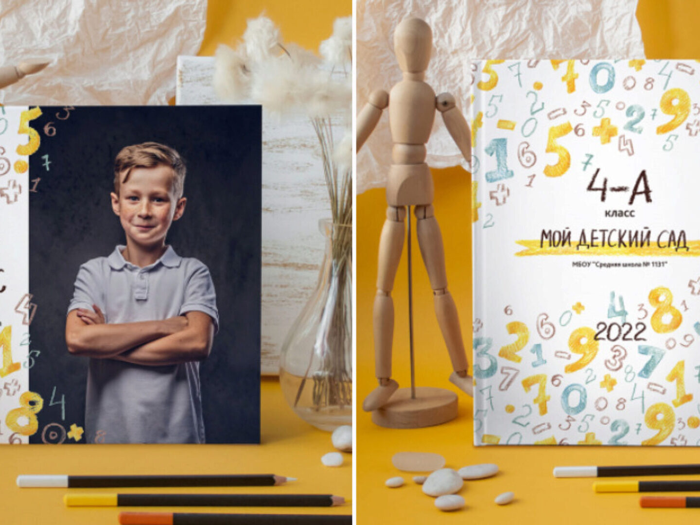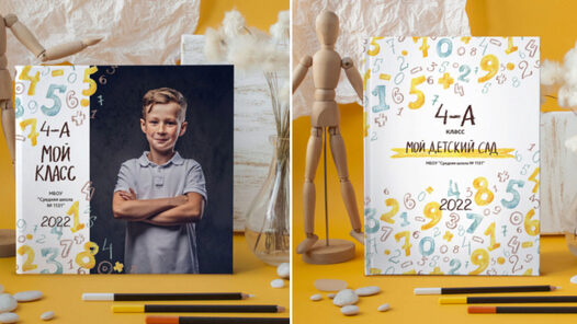 Идеальный дизайн для выпускников школ, колледжей и вузов с математическим направлением. Подойдёт для младших классов. 2 типа обложки — индивидуальная и общая цифра года в шрифтах! Можно менять на 2023, 2024 и далее 6 разворотов, включая индивидуальный, виньетку, а также разворот на 4 учеников для
