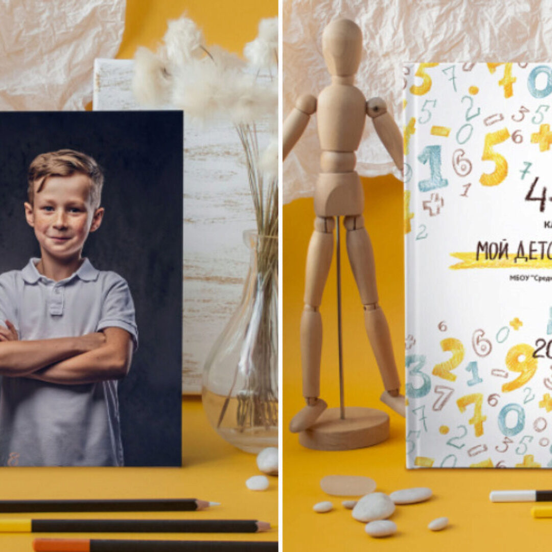 - расположение фото и количество детей в виньетке и на разворотах можно менять.
