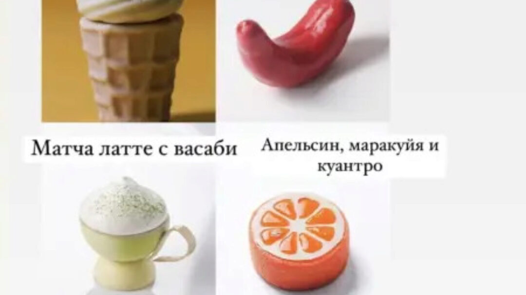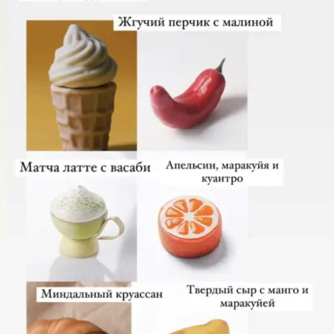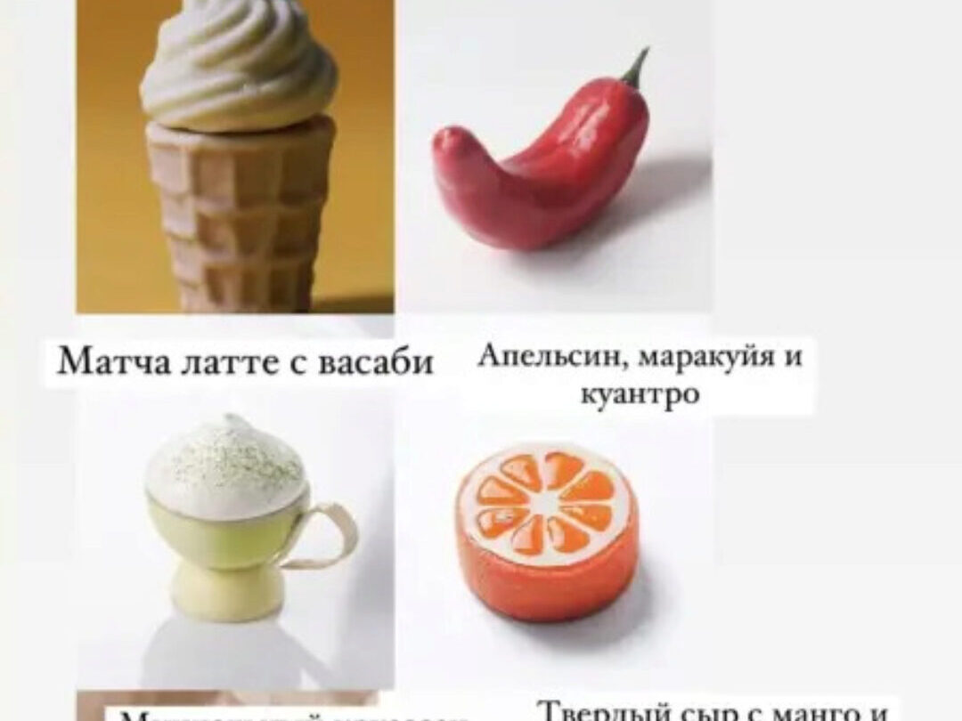 5. Мороженое - фисташковый ганаш, кекс и гель с грейпфрутом, крем с абрикосом.