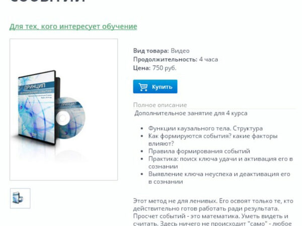 Отзывы о курсе «4 курс. Принцип формирования событий» от Ксении Меньшиковой