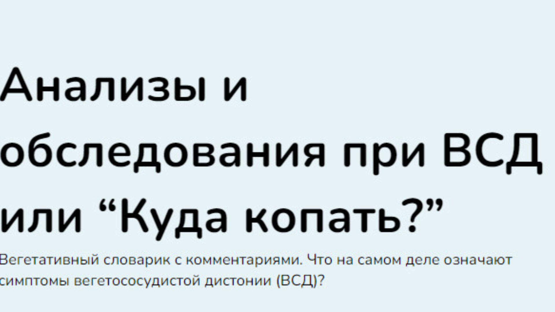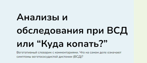 Курс Анализы и обследования при ВСД или Куда копать?, автор Ксения Овсянникова.