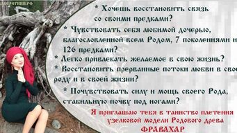 Родовое дерево отражает причинно-следственные родовые связи, является носителем ценнейшей генетической информации. Выплетая, мы восстанавливаем утраченные связи со всеми 126 предками до 7-го поколения! Фравахар — очень мощная практика. Это глубокое медитативное вхождение в Силу и Ресурс своего Рода. Каждый узел это предок. И так мы проплетаем предков в 7 поколениях.