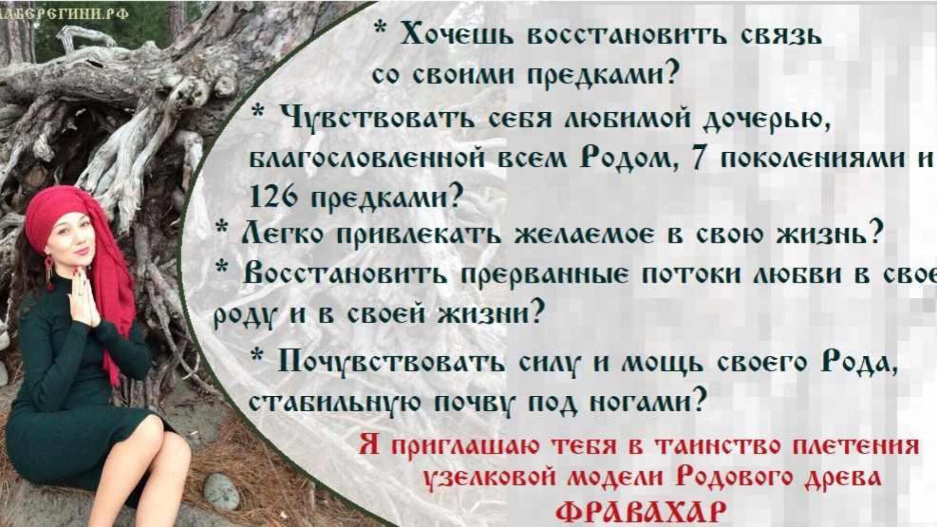 Если Вы хотите соединиться с родом, войти в Силу Вашего Рода, открыть новый ресурс, укорениться и соединиться с материальным миром, узнать о родовом творчестве и родовых ценностях, приглашаю Вас онлайн Ритуал Плетения Фравахар.