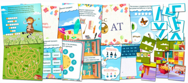 В комплект входят 4 шаблона для заданий. Они могут понадобиться в том случае, если среди всех имеющихся вариантов ответов вы не нашли подходящего вам. Тогда вы можете загадать в качестве ответа любое слово и вписать его буквы в соответствующий шаблон.