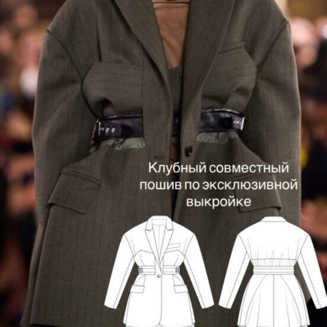 Необычный, оригинальный жакет бренда Sacai сложного кроя привлёк мое внимание и не покидает мои мысли. Хочу! Хочу и буду разрабатывать его и шить.