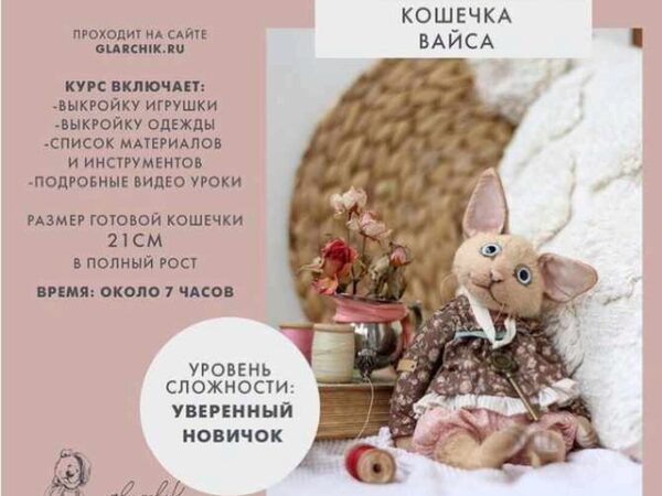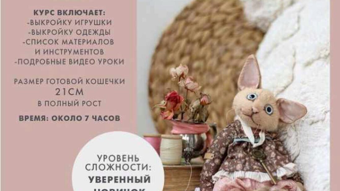 В этот видеокурсе я рассказываю как сшить такую кошечку, из каких материалов, чем набить и как оформить, а так да наряд для неё.