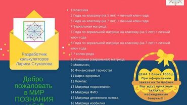 Это просто супер облегчение для всех, кто любит матрицу, но не любит бесконечные расчеты. 7 калькуляторов по 1000р за каждый, добавлены расчеты по классической системе таро, где энергии после 22 не складываются, а вычитаются. - Основа - 7 колен рода - Матрица прошлых воплощений - Матрица изобилия -