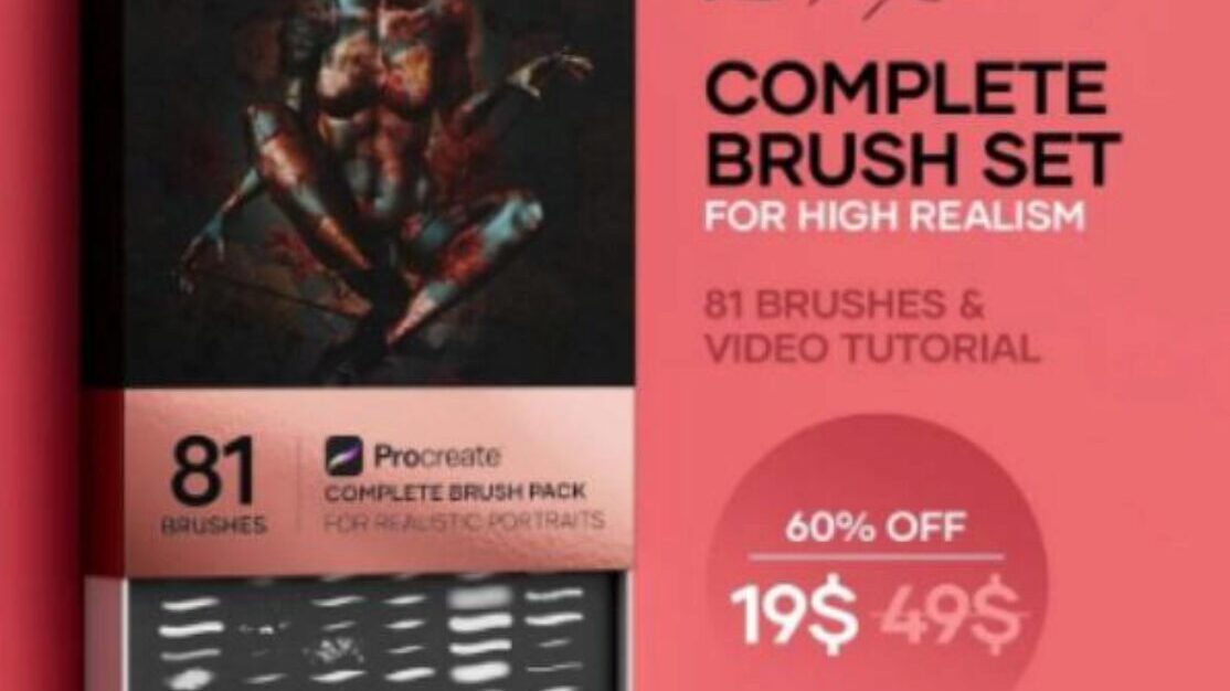 ✓ 8 мин. видеоурок, в котором вы узнаете, как использовать кисти для реалистичного рисования кожи.