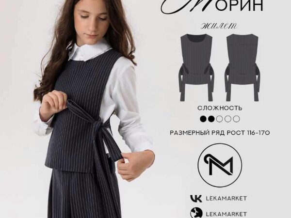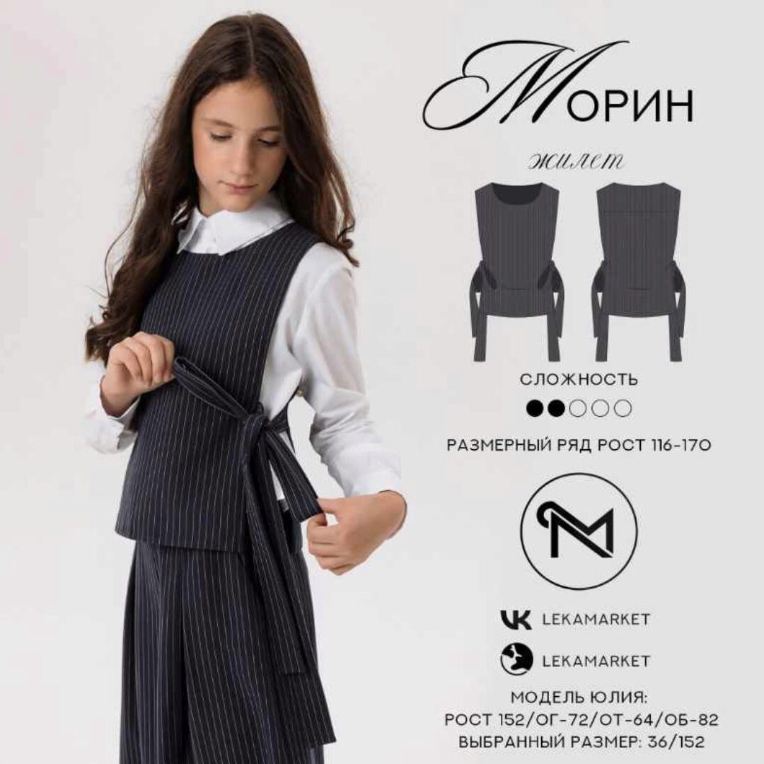 [Lekamarket] Жилет Морин. Размер 28-46. Рост 116-170. В архиве будет выдано файлы в формате pdf с выкройкой для печати в формате А4 и буклет-инструкция со сборкой выкройки, раскладкой на ткани, фотографиями технологии пошива, подробное описание технологии пошива