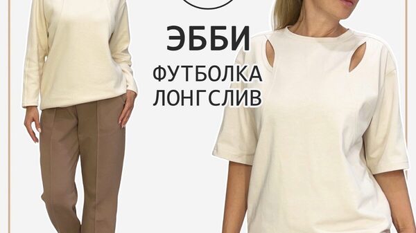 Модель имеет свободный объём. Шить можно с длинным рукавом как лонгслив и с коротким как футболку. Если удлинить, можно сшить в виде платья.