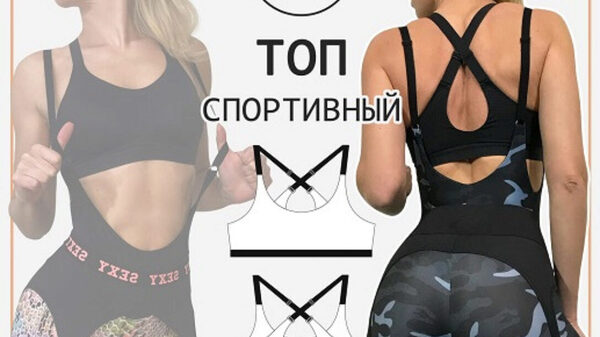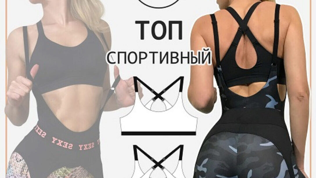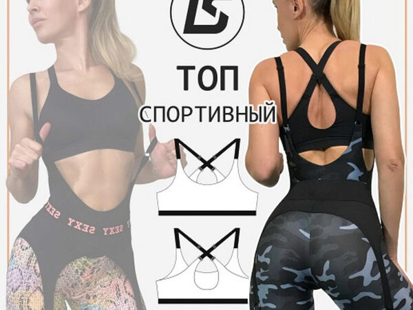 Данная модель в крое представлена без чашек, но при желании вы можете их добавить, сделав разрезы под кармашек для чашек в боковых швах. Топик отлично смотрится с любыми лосинами, представленными на нашем сайте.