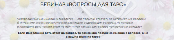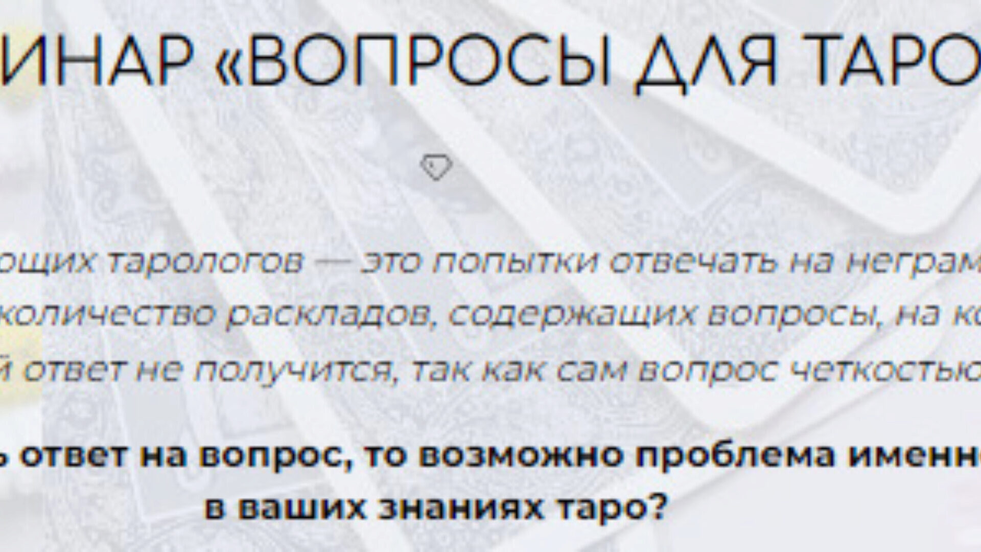 Как большой фанат четкости и грамотных формулировок, я создала вебинар «Вопросы для таро» длительностью в 2 часа и без всякой воды - только полезное