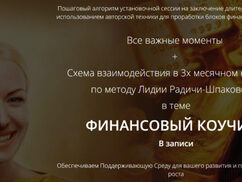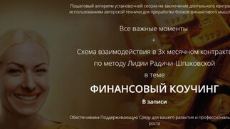 Все важные моменты + Схема взаимодействия в 3х месячном контракте по методу Лидии Радичи-Шпаковской в теме ФИНАНСОВЫЙ КОУЧИНГ (в записи).