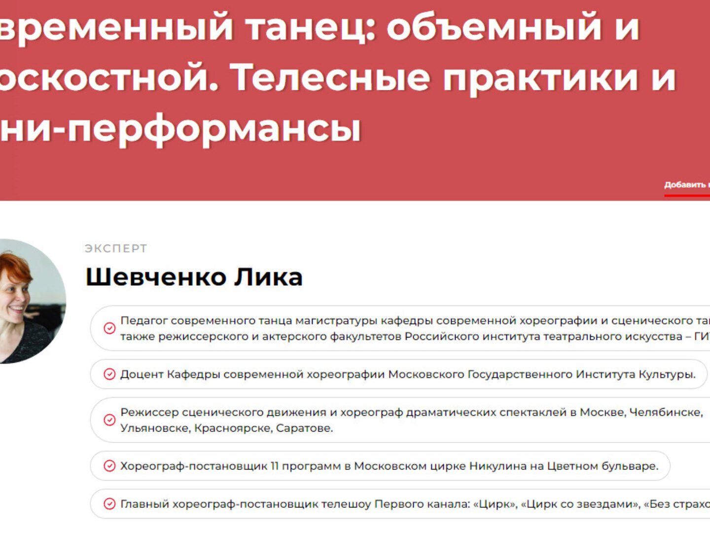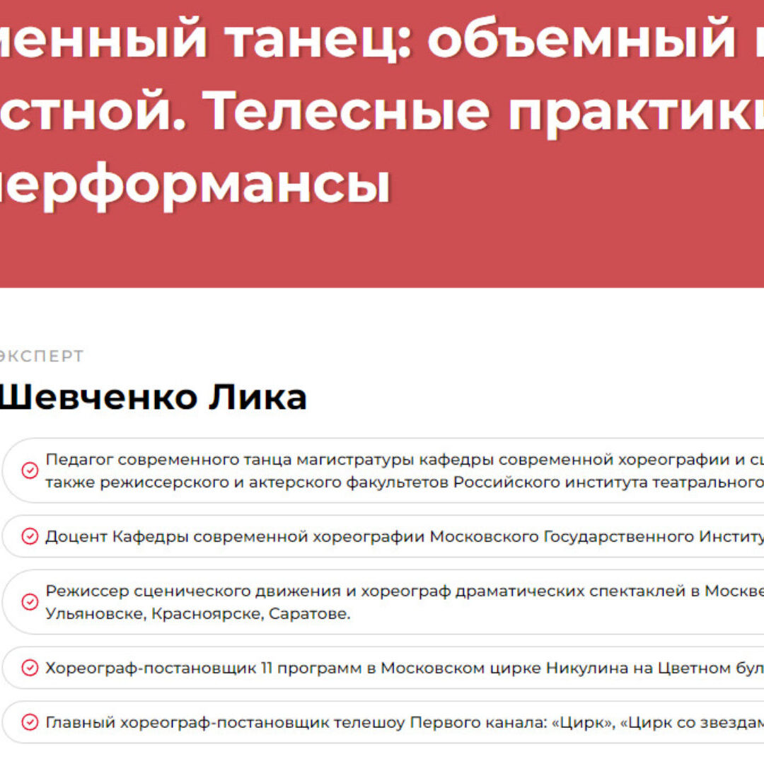 Лика Шевченко «Современный танец объемный и плоскостной. Телесные практики и мини-перформансы» слив скачать