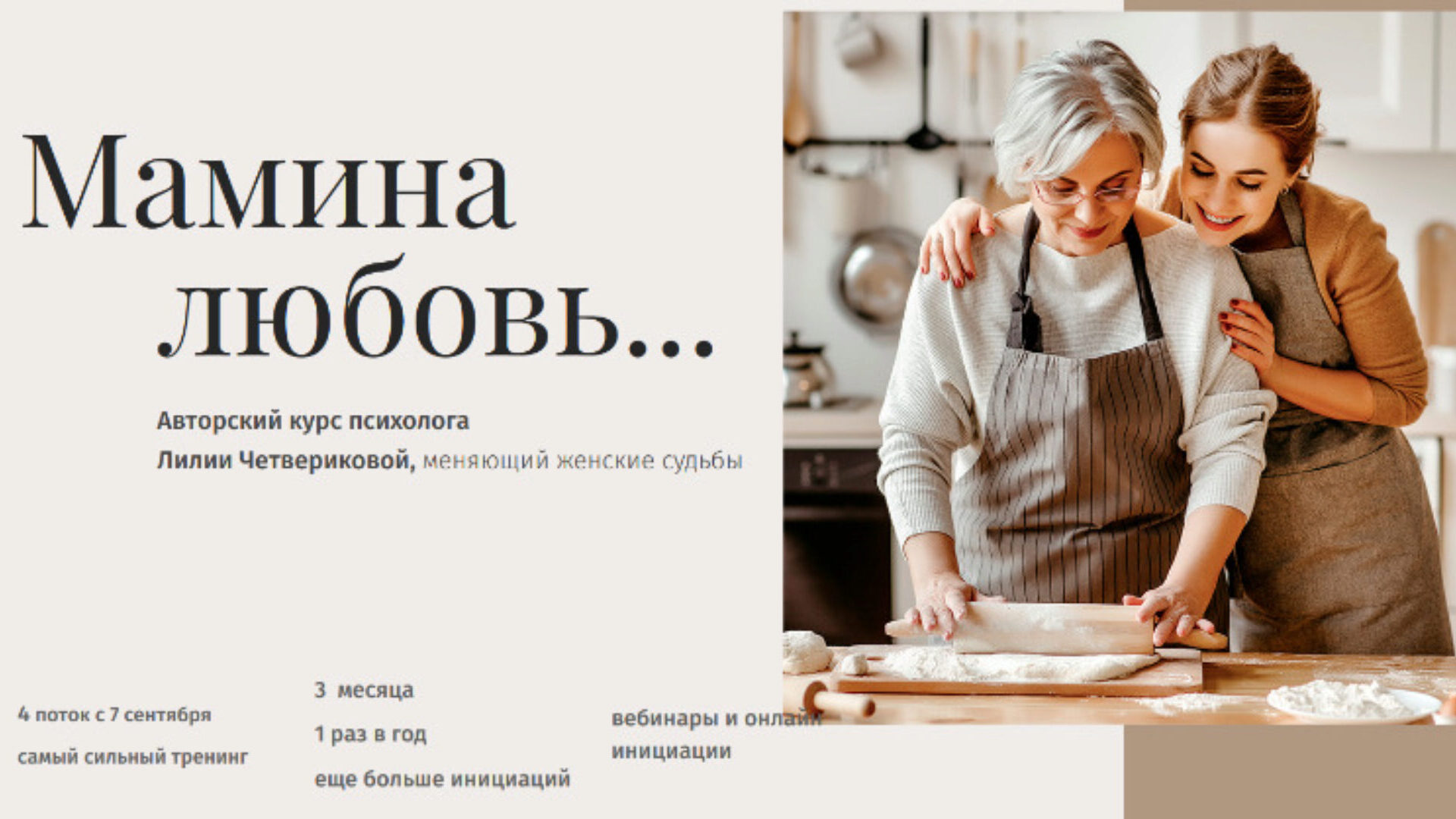 На тренинге «Мамина любовь» ты словно родишься заново. Но на этот раз у бесконечно любящей и принимающей матери, которая благословит тебя на здоровье, богатство и женское счастье.