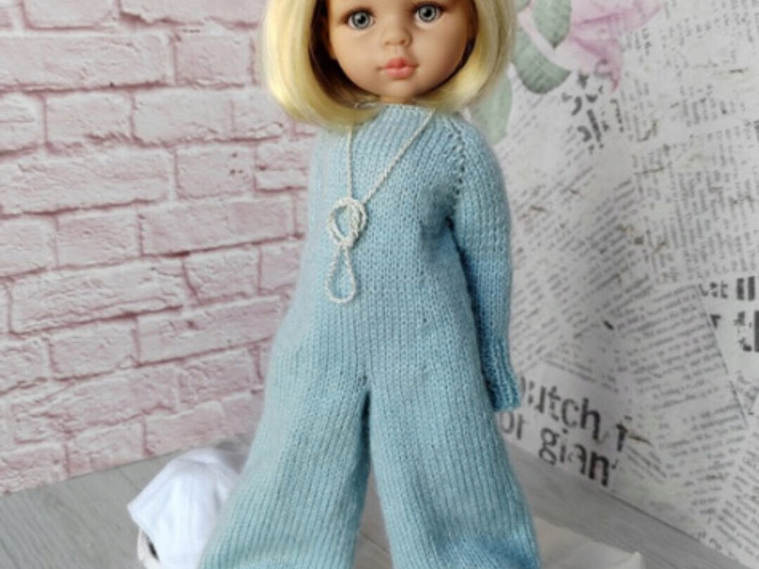 По этому описанию вы сможете связать комбинезон для куклы Паола Рейна ростом 32-34 см (или аналогичной по телосложению) Комбинезон с застёжкой на пуговицы на спинке вяжется вкруговую на пяти спицах. Оборки вяжутся крючком. Спицы №1.7-2 Пряжа: Alize «Angora Gold» (100 г 550 м) или аналогичная,