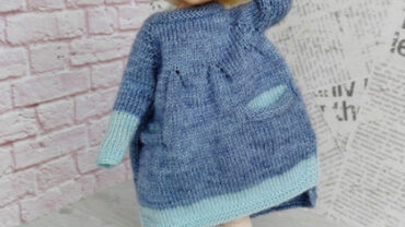 По этому описанию вы сможете связать распашное платьице для куклы с застежкой на пуговицы на спинке. Платье вяжется безотрывно от начала до конца, на двух спицах поворотными рядами. Платье вяжется на спицах №1.5-1.7 + крючок (для сшивания рукава) Пряжа: Alize «Angora Gold» (100 г 550 м) или