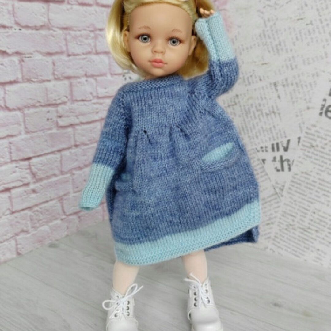 Платье «Ния» для кукол Паола Рейна ростом 32 см и им подобных. Распашное, на пуговицах, вяжется на двух спицах №2 Пряжа: Alize «Angora Gold» (100 г 550 м) или аналогичная, попадающая в плотность. Подойдёт пух норки. Проверяйте плотность на образце! Плотность вязания (по лицевой глади): Полотно 20 п