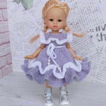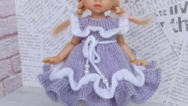 Описание вязания платья для кукол ростом 20-23 см спицами. Модель подходит для кукол Паола Рейна мини 21 см, Крузелингс, Монст и других аналогичных. Распашное платье вяжется на двух спицах №1.7-2 Плотность вязания (по лицевой глади): Полотно 15 петель + 2 кром. = 4,2 см в ширину МК в PDF файле на 6