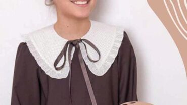 Съемный плосколежащий отложной воротник. Срезы концов и отлета воротника обработаны оборкой. Воротник завязывается спереди с помощью ленты.