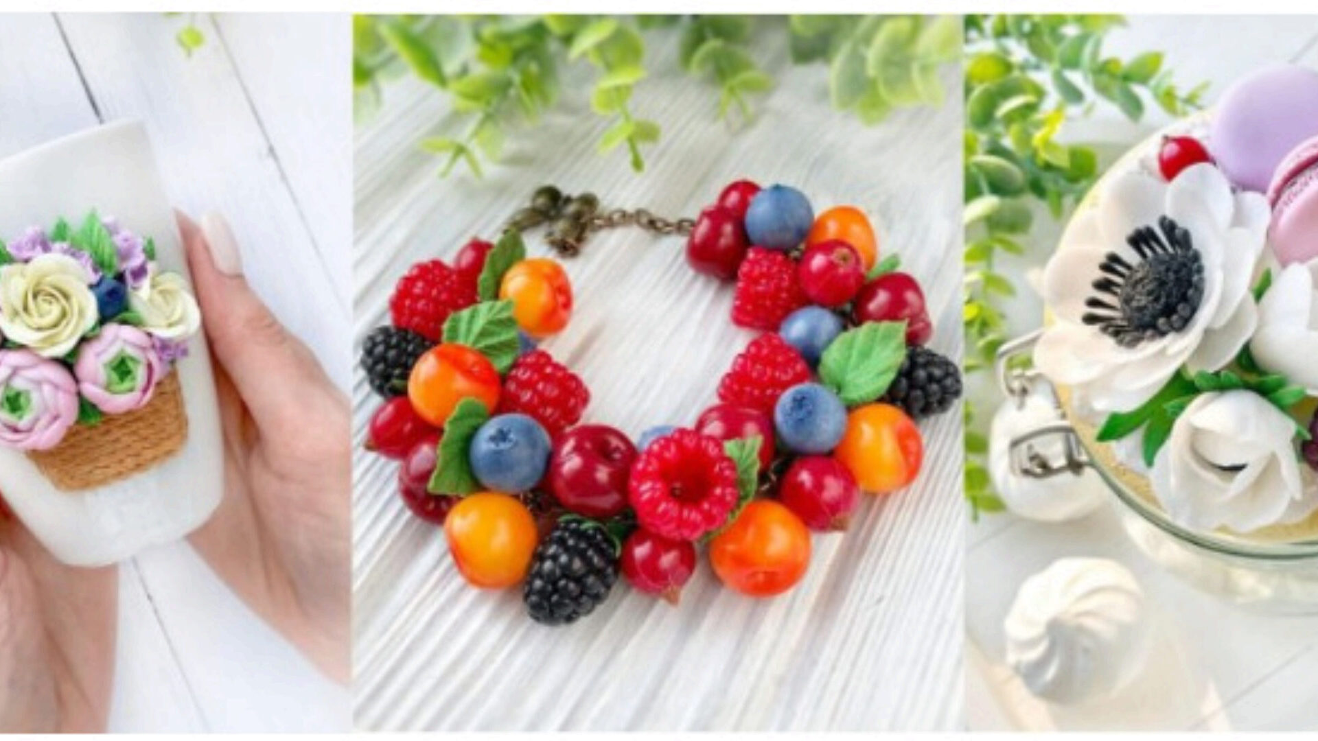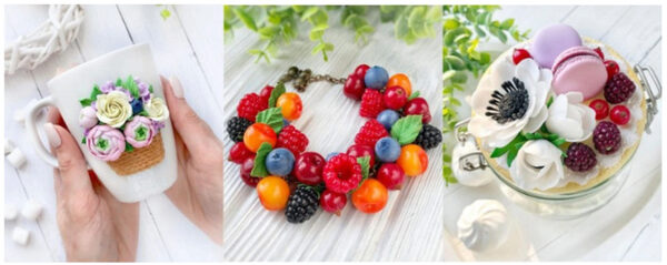 По итогу курса мы создадим 3 готовых изделия: вкусную баночку, кружку с цветочной корзиной и соберем браслет с сочными ягодами!