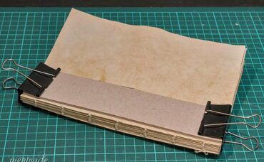 - как обратно собрать книжный блок на шнурах из отдельных тетрадок;
