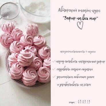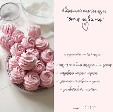 Авторский онлайн-курс «Зефир на весь мир», автор Ляйсян Казыргалина. Опираясь на собственный опыт и наработки,имея диплом и опыт преподавания, решила создать собственный курс,в который вложила много знаний и любви.
