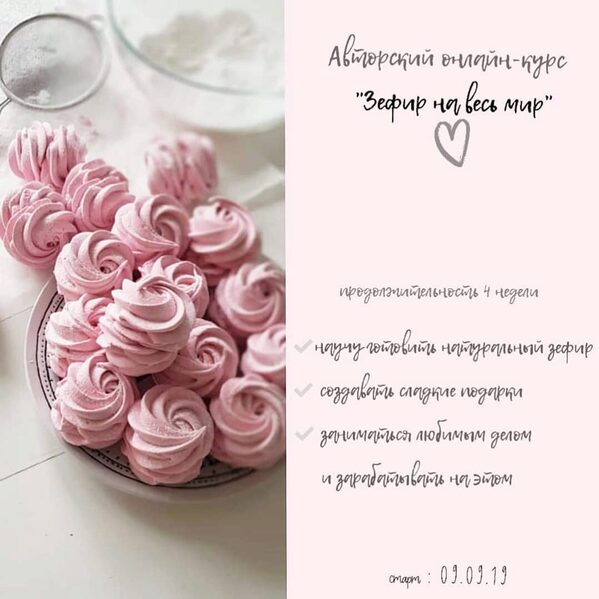 Да, Вы можете получить получить бесплатно фрагмент курса Авторский онлайн-курс «Зефир на весь мир», просто напишите на почту или в телеграм