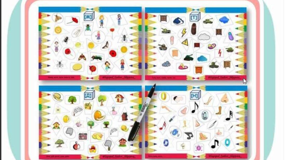 Задания на дифференциацию парных по звонкости-глухости звуков Т-Д, П-Б, К-Г, В-Ф (по одному листу на каждую пару) Закрасить кружочки у картинок разными цветами по заданию. Вместо закрашивания можно выкладывать разноцветные камешки марблс или пользоваться пластилином (для долговечности лучше