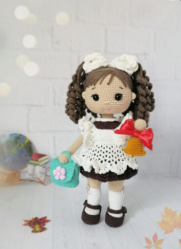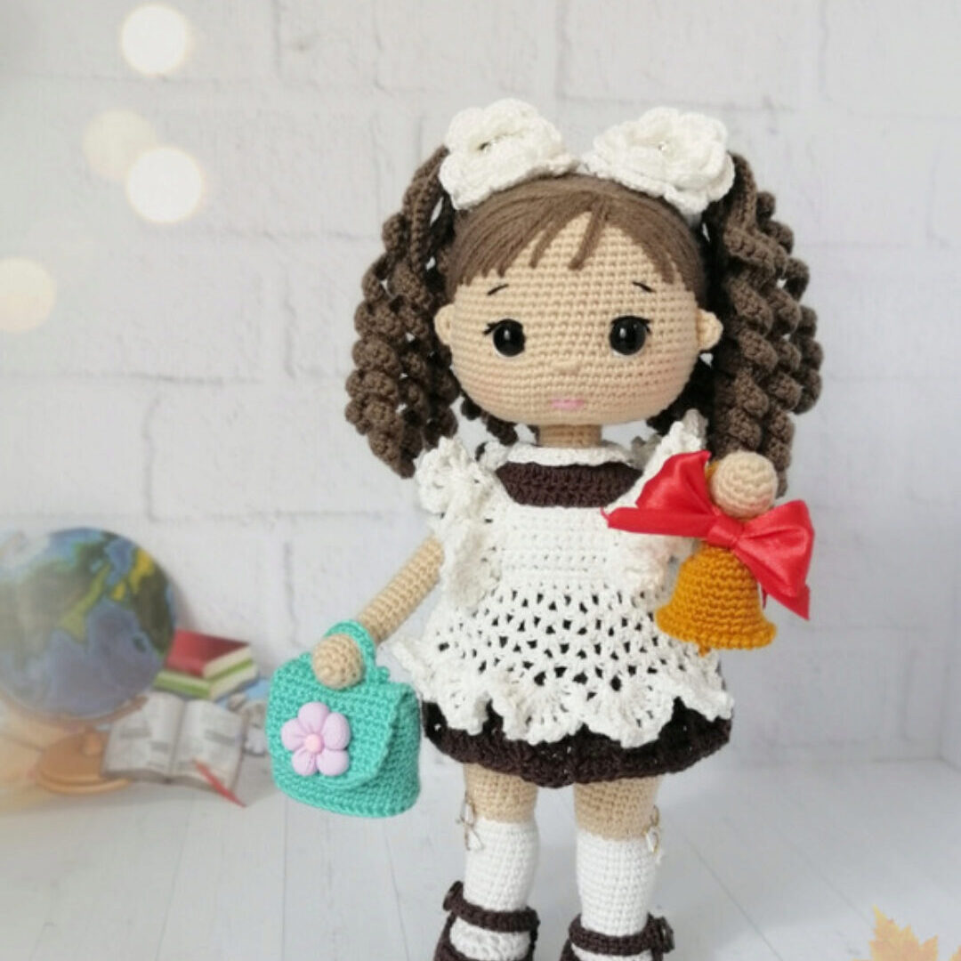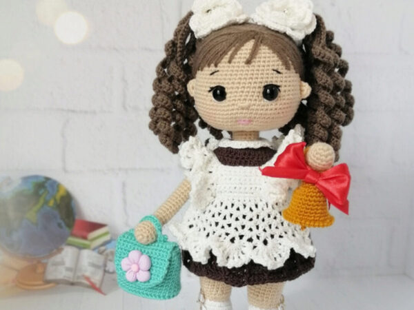 Мастер-класс по вязанию куклы «Первоклашка Маша». Мастер-класс в формате пдф содержит: 52 страницы подробного описания вязания куклы и одежды к ней; фото процесса; рекомендации по вязанию, а также по использованию материалов и инструментов;